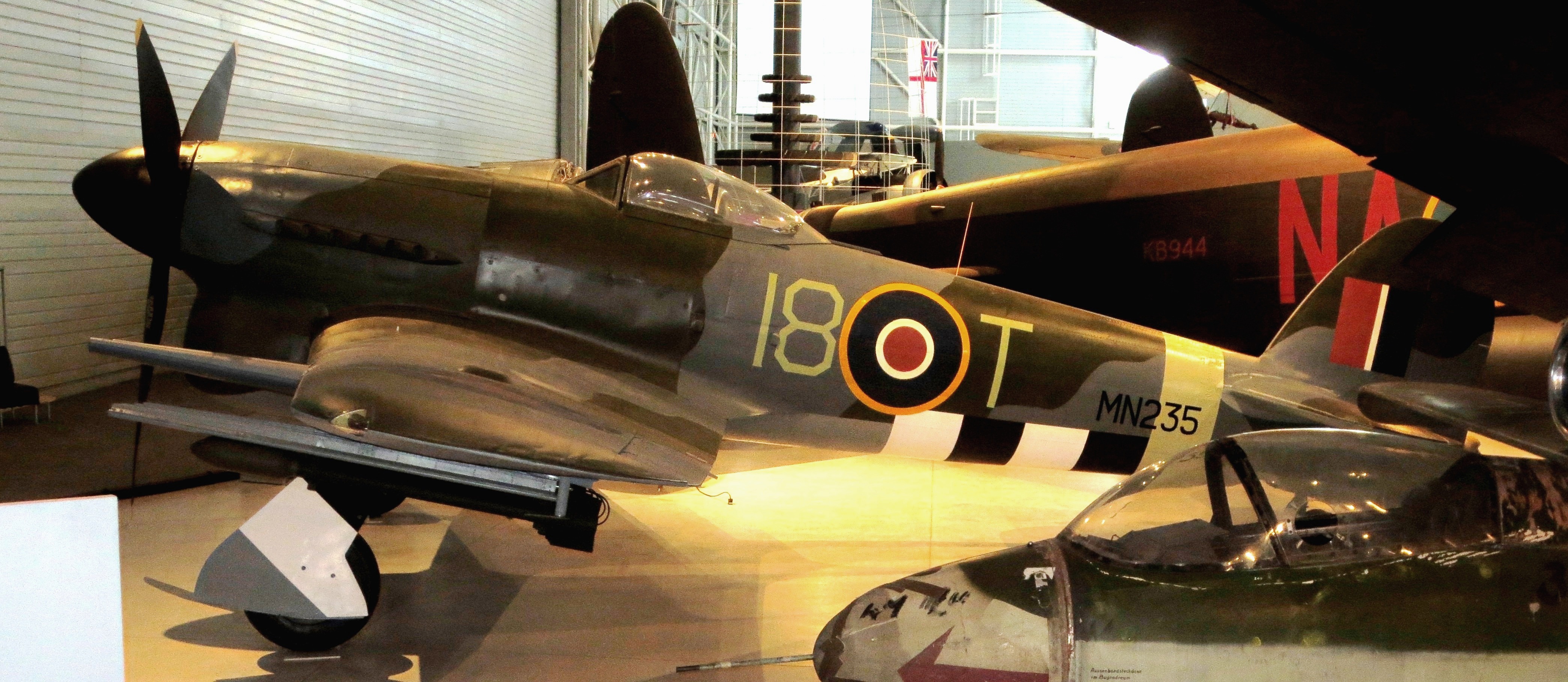 Hawker Typhoon Mk. IB, (Serial No. MN235) on loan from the RAF Museum in England.  This aircraft was originally used by the USAAF for evaluation and Comparison trials.  Post war it was allocated to the NMUSAF.  It was in storage with the Smithsonian Institute before returning to England in 1968.  This aircraft is now back in the UK with the RAF Museum.