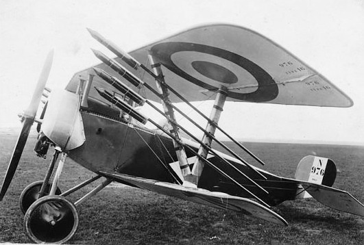 Nieuport 17 (Serial No. N976) of the Armée de l’Air equipped with Le Prieur rockets, France, ca 1917.