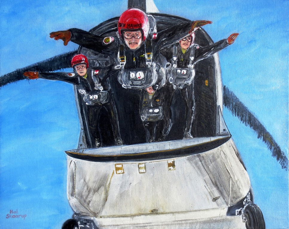 Canadian Forces Parachute Team, Sky Hawks, exiting a Boeing CH-147 Chinook helicopter.