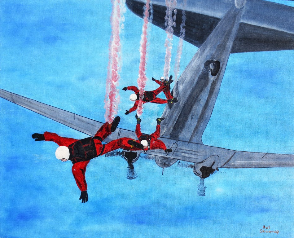 Canadian Forces Parachute Team, Sky Hawks, exiting a Douglas CC-129 Dakota.
