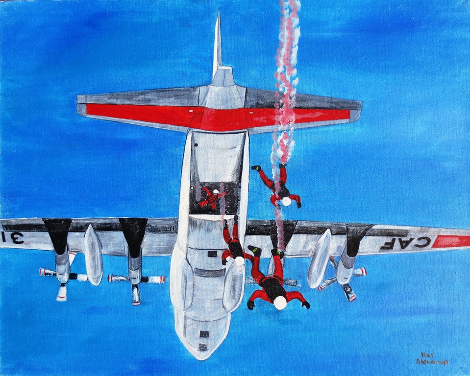 Canadian Forces Parachute Team, Sky Hawk Capt Hal Skaarup, exiting a CC-130 Hercules.