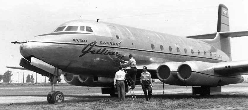 Avro C102 Jetliner, ca 1950. The Avro C102 Jetliner was a Canadian prototype medium-range turbojet-powered jet airliner built by Avro Canada in 1949. It was beaten to the air by only 13 days by the de Havilland Comet, thereby becoming the second jet airliner in the world. The name “Jetliner” was chosen as a shortening of the term “jet airliner”, a term which is still in popular usage in Canada and the United States. The aircraft was considered suitable for busy routes along the US eastern seaboard and garnered intense interest, notably from Howard Hughes who even offered to start production under license. However continued delays in Avro’s all-weather interceptor project, the Avro Canada CF-100 Canuck, led to an order to stop working on the project in 1951, with the prototype Jetliner later cut up for scrap. It was not in service with the RCAF. (Wikipedia)