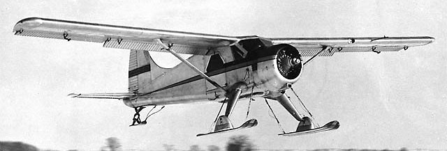 de Havilland Canada DHC-2 Beaver on skis in flight.