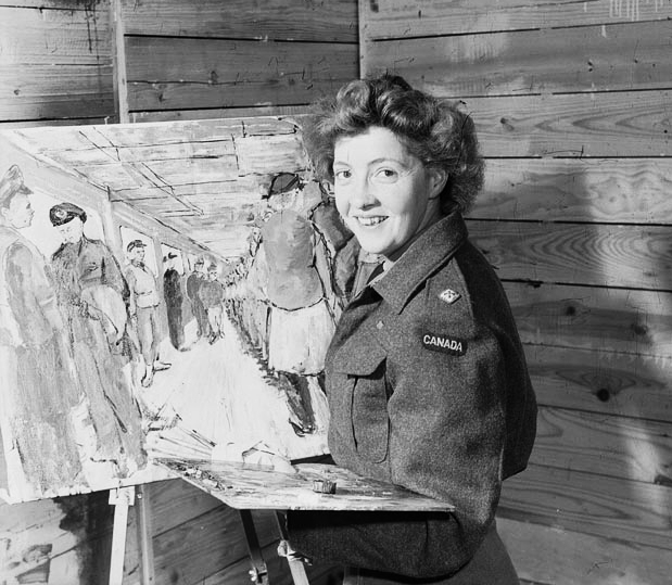 Second Lieutenant Molly Lamb of the Canadian Women’s Army Corps (CWAC), a Canadian war artist, London, England, 12 July 1945.