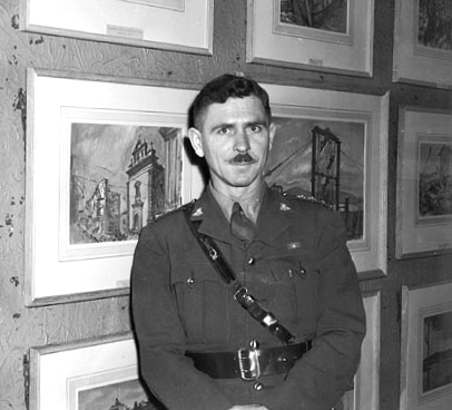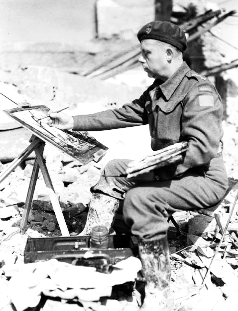 Captain C.F. Comfort, a Canadian war artist, Italy, 1943. Comfort’s war began in October 1939 when he became a rifle instructor with the Canadian Officers’ Training Corps. In February 1943 he was commissioned as a lieutenant in the Canadian Active Service Force to serve as an official war artist. He had supported the idea of a war art program from the beginning in the full knowledge that Canada had successfully pioneered such a scheme during the First World War.