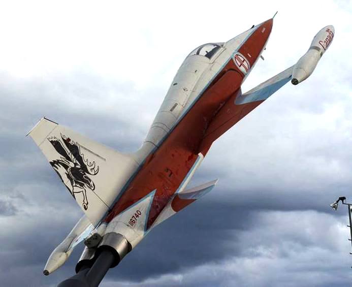 Canadair CF-116 Freedom Fighter (Serial No. 116740), C/N 1040, 419 Sqn, mounted on a pylon outside the Airport terminal.