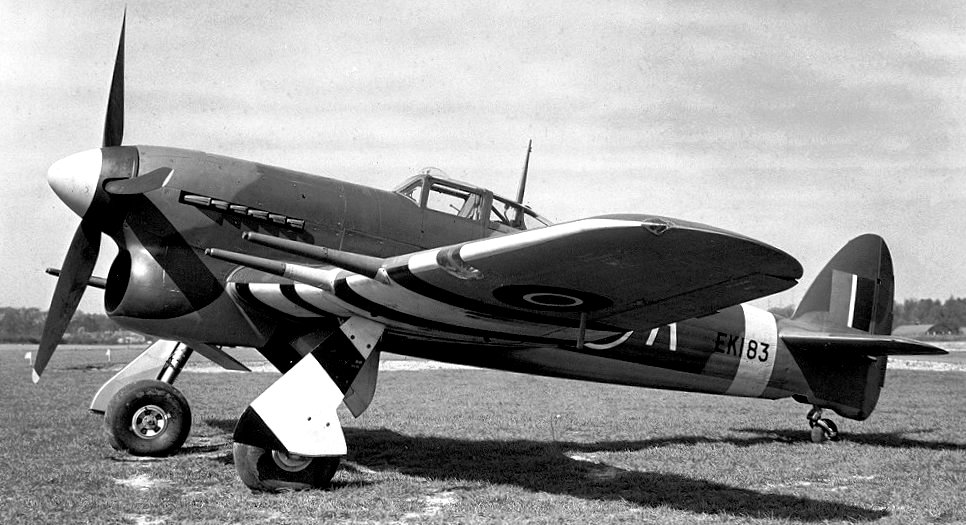 Hawker Typhoon Mk. IB, RAF (Serial No. EK183), US-A, of No. 56 Squadron RAF at RAF Matlaske, Norfolk, on 21 April 1943.