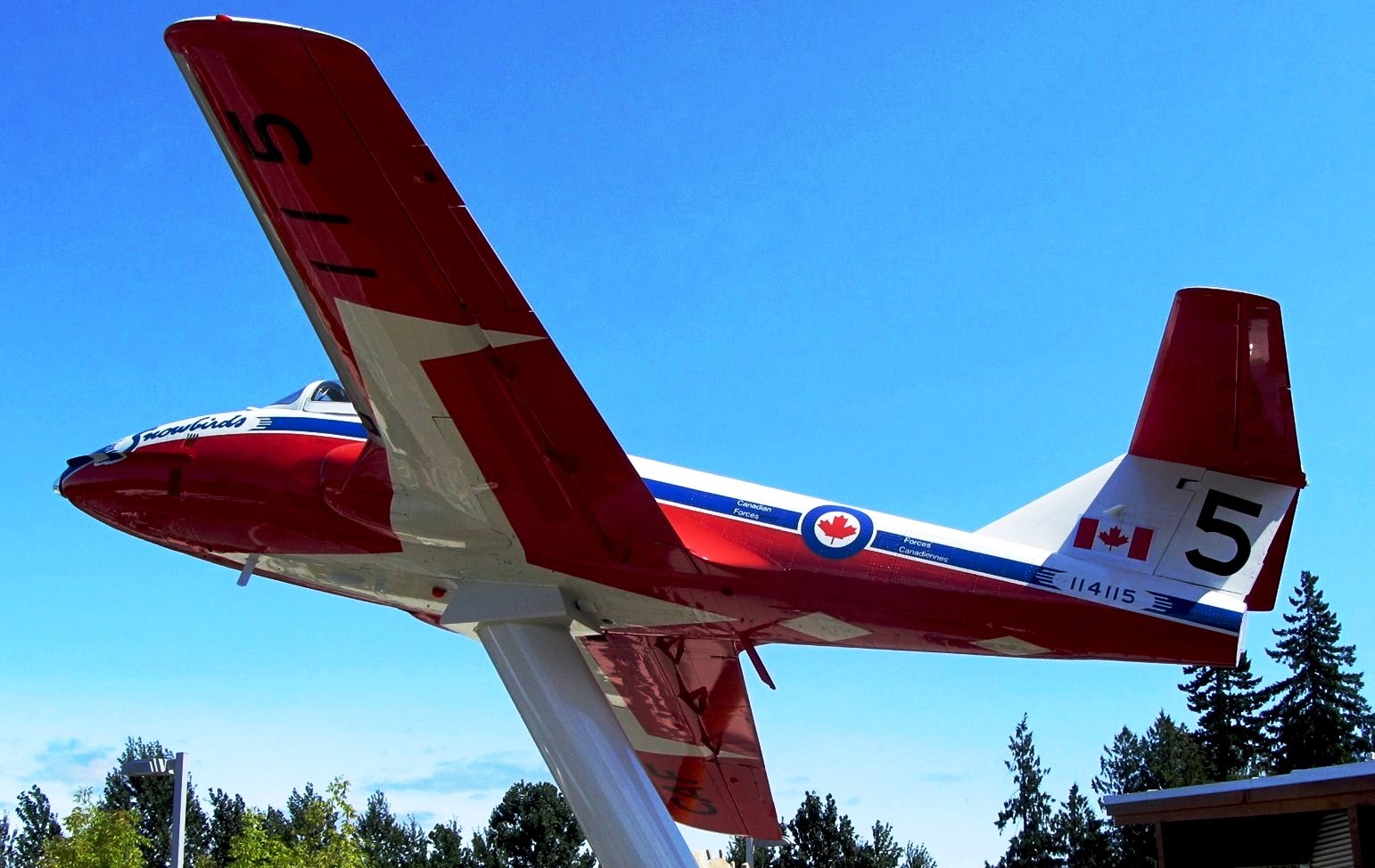 Canadair CL-41/CT-114 Tutor (Serial No. 114115), Snowbird No. 5, mounted on a pylon.