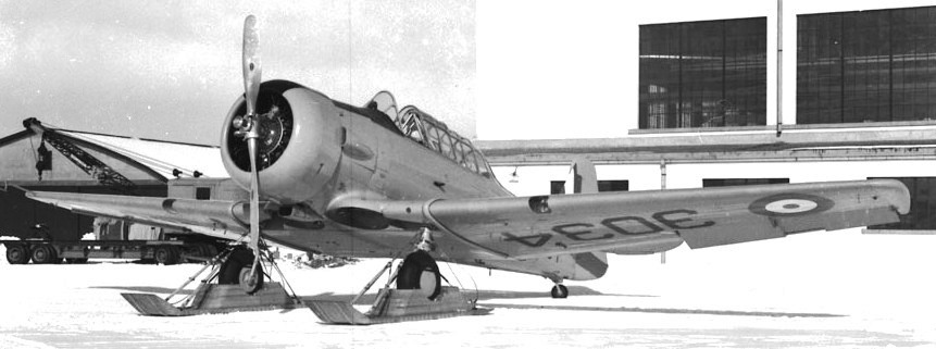 North American NA-66 Harvard Mk. II, RCAF (Serial No. 3034), on skis.