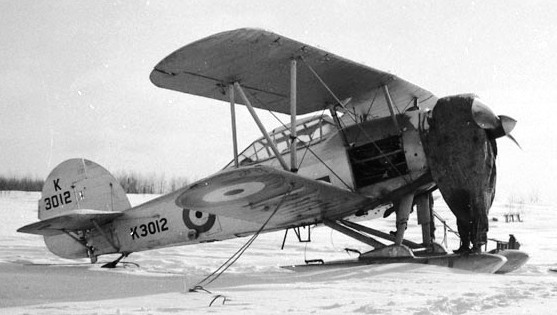 Hawker Hart, RCAF (Serial No. K3012), with skis, 14 Apr 1937.