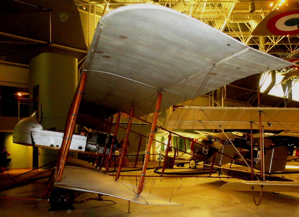 Maurice Farman S.11 Shorthorn, CA&SM.  The Shorthorn is a two-seat biplane bomber developed in 1913 by Farman Frères, a French aircraft company founded in 1908 by pioneering aviators Maurice and Henri Farman.  The aircraft is a “pusher” with the engine in the rear of the nacelle.  Designed and first flown in France, the Shorthorn was adopted by the air forces of Australia, Belgium, Britain, France, Italy, and Russia.  It was manufactured under licence in Britain and Italy.  During its early war service in reconnaissance and light bombing, the Shorthorn carried no defensive armament.  It was later relegated to training duties.  The Shorthorn retired from RAF service in 1918.
