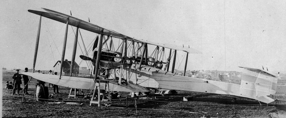 Vickers Vimy aircraft of Captain John Alcock and Lieutenant Arthur Whitten Brown, Lester’s Field, Newfoundland, June 1919.