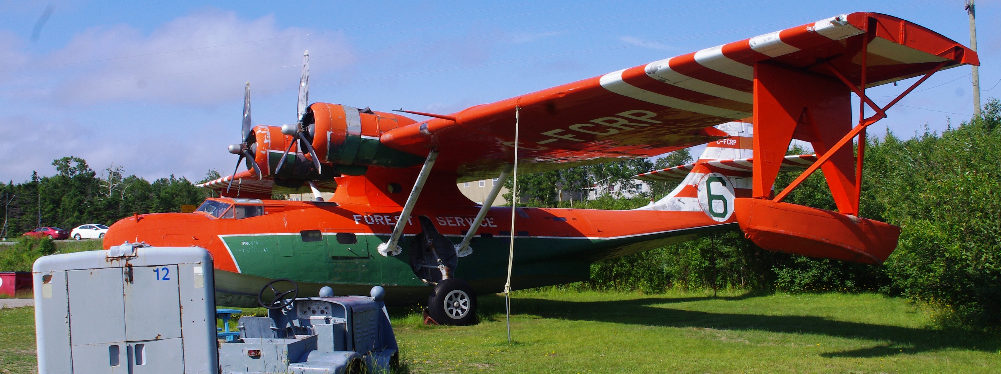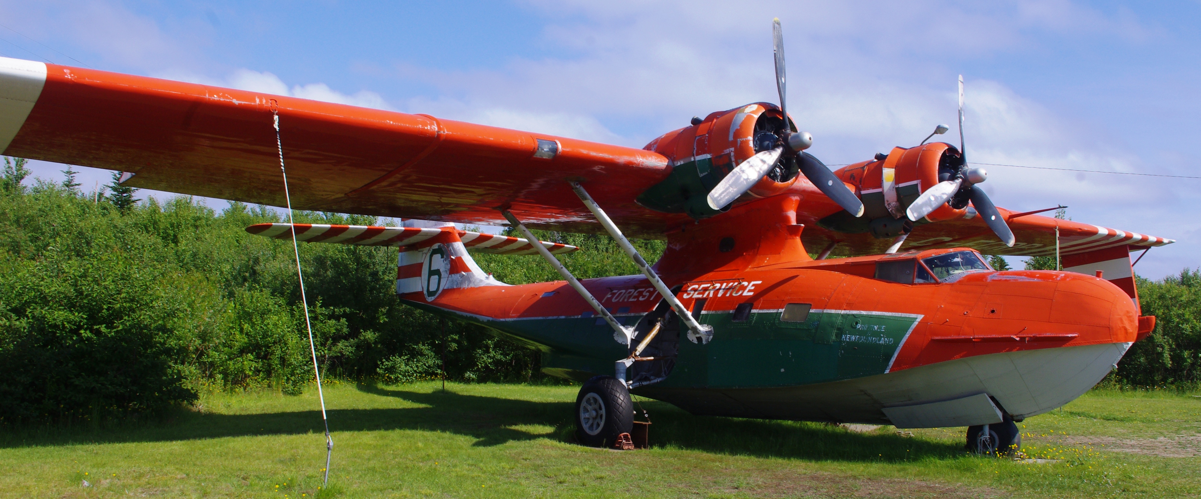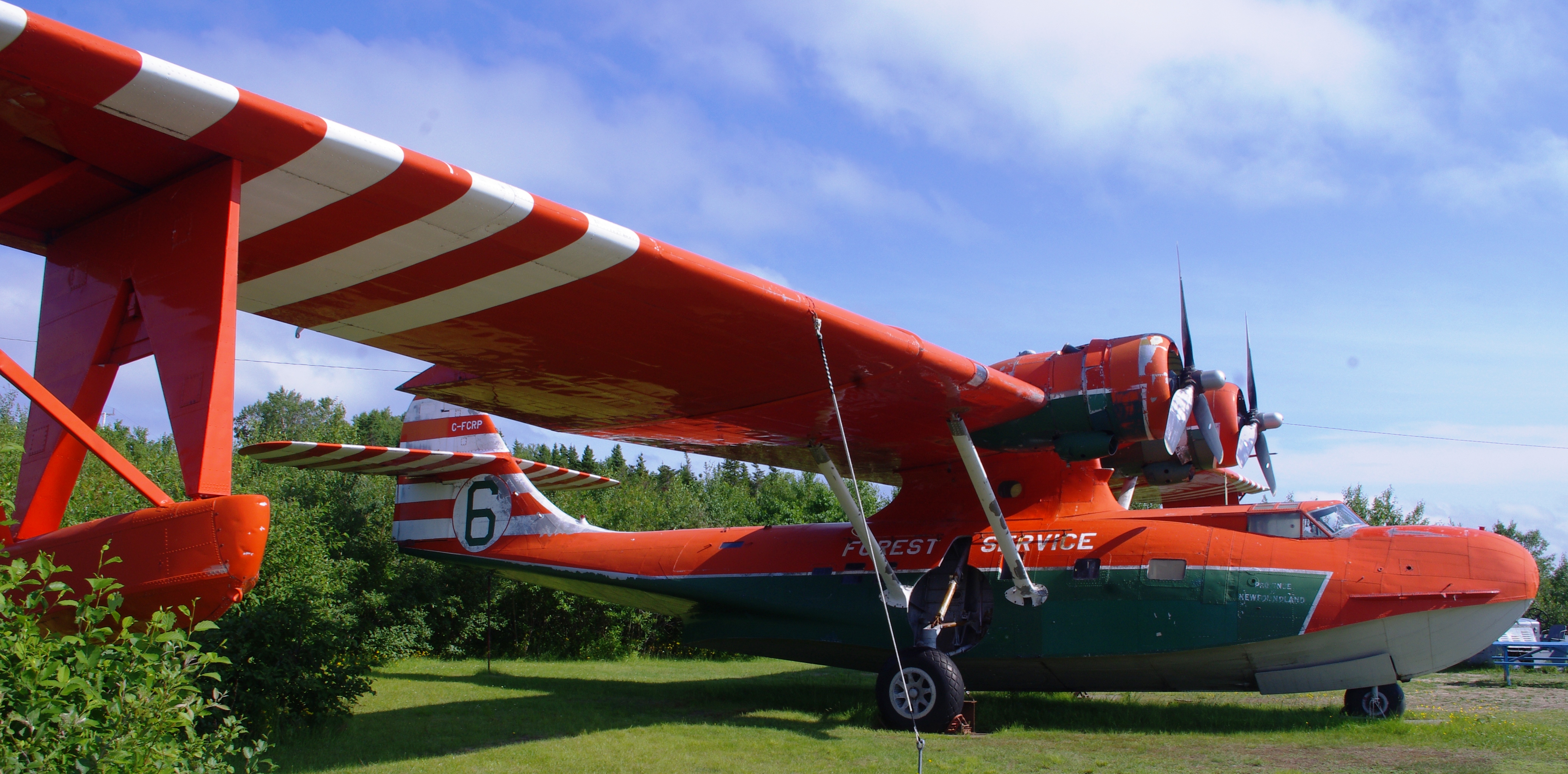 Botwood was home to No. 116 (Bomber Reconnaissance) Squadron. It started operations with the Consolidated Catalina Mk. I and Mk. IB and later converted to the Canadian-built Canso A. The peeling paint on this former RCAF aircraft hints at its previous operator, the Government of Newfoundland. They used it as a water bomber until it was replaced by the Canadair CL-215.