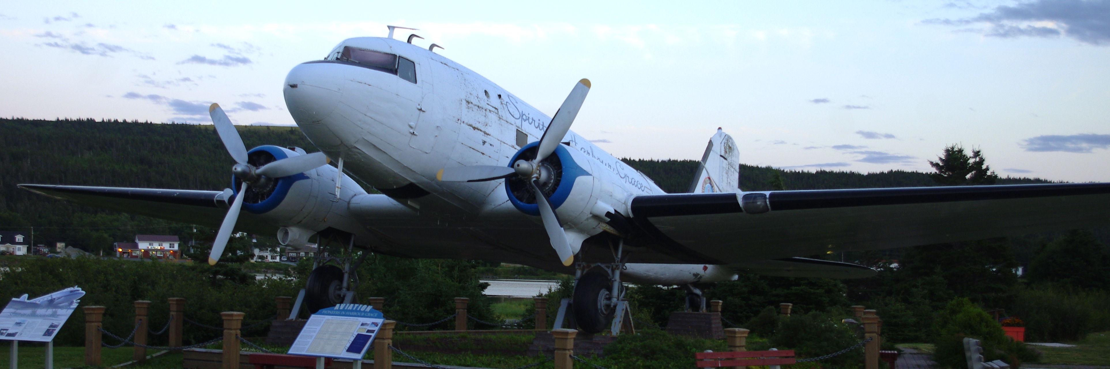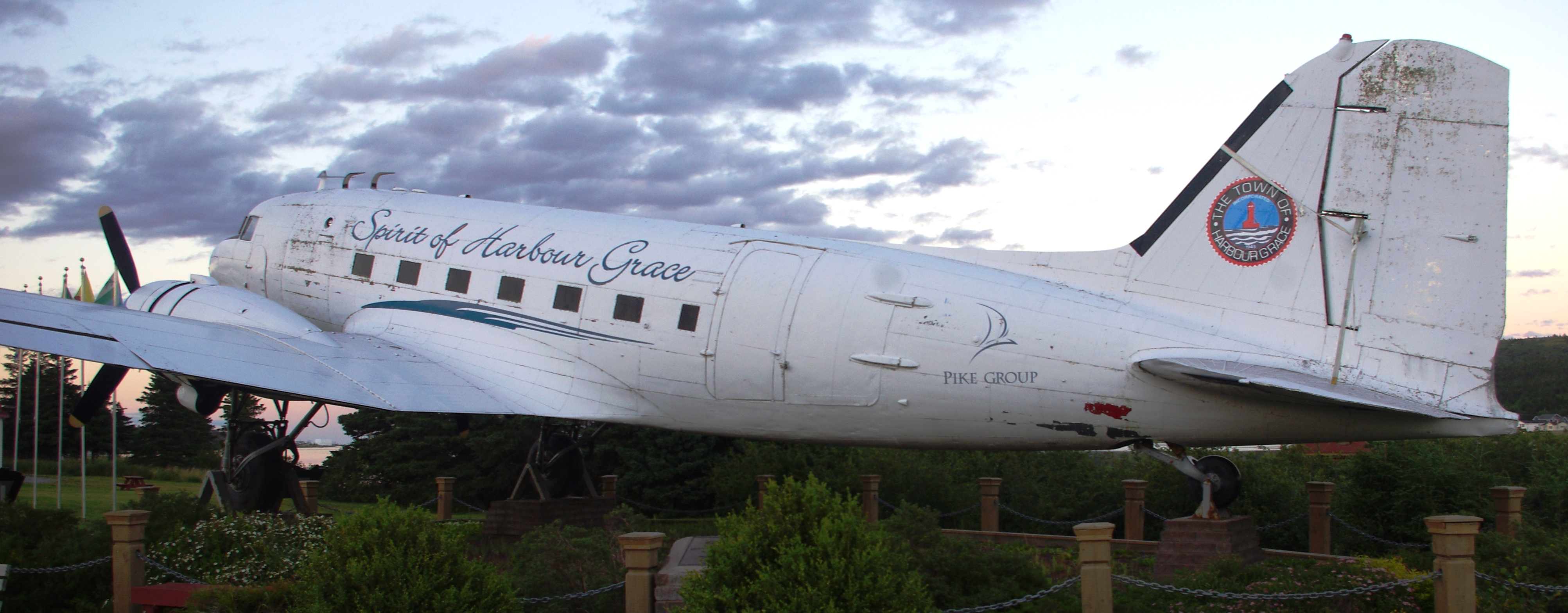 Douglas DC-3, CF-QBI, ex-Labair, âSpirit of Harbour Graceâ, mounted on a pylon.