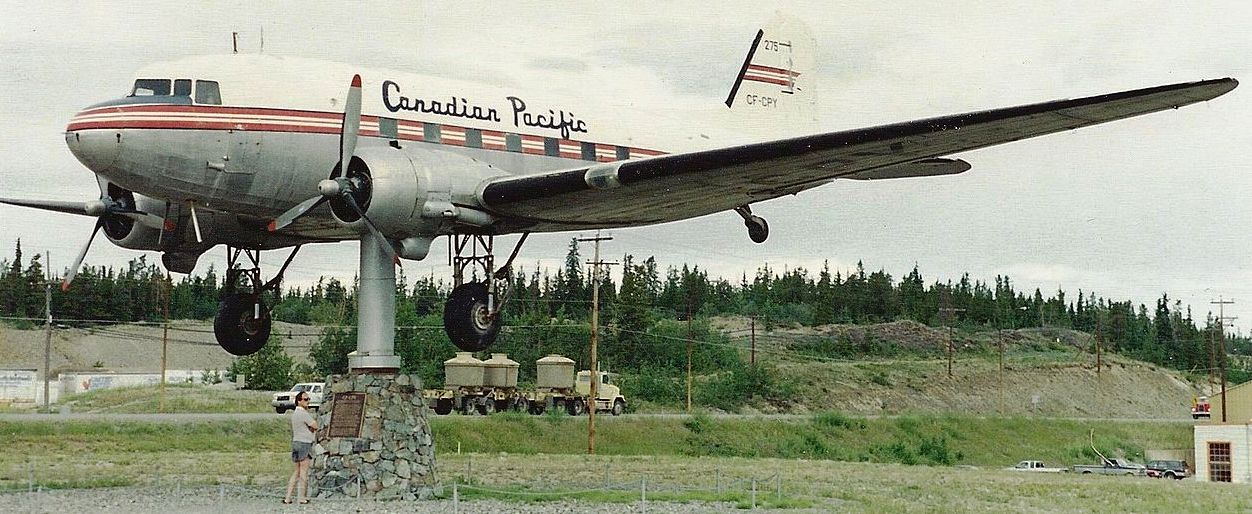 Douglas DC-3 Dakota (Serial No. 4665), CF-CPY, mounted on a pylon as a weathervane, former Canadian Pacific Air Lines.