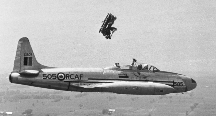 Canadair CT-133 Silver Star (Serial No. 21505), conducting ejection tests with a dummy. (DND Photo, PL-129238)