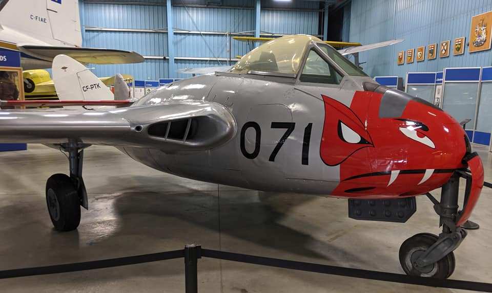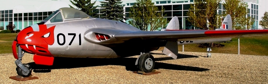 de Havilland DH 100 Vampire, RCAF (Serial No. 17042), FB-U, with blue and red roundel.