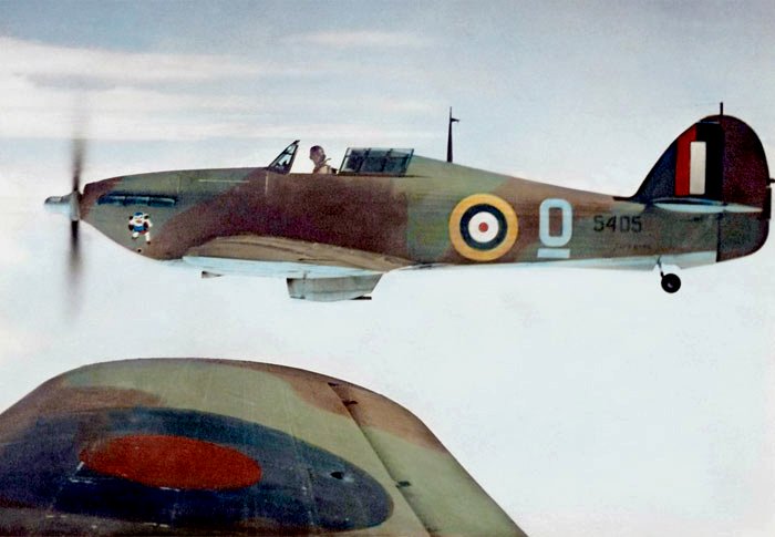 Hawker Hurricane Mk. XII in flight, RCAF (Serial No. 5405).