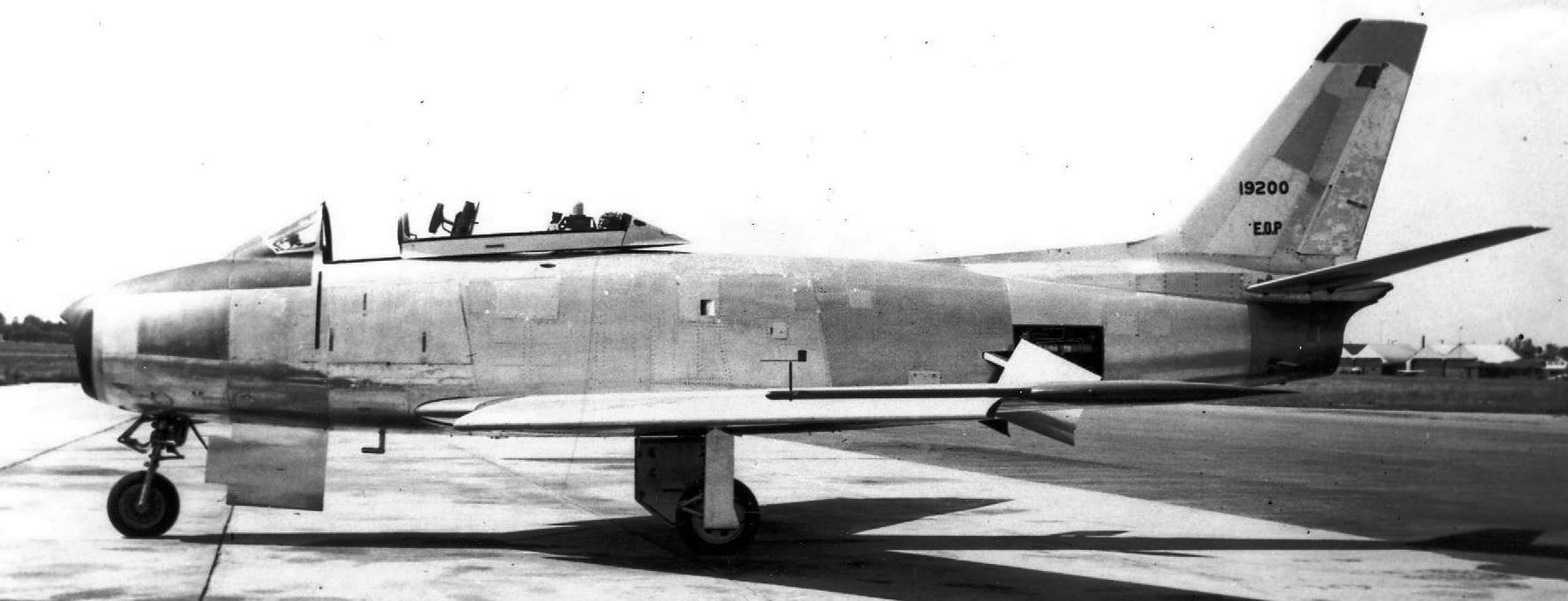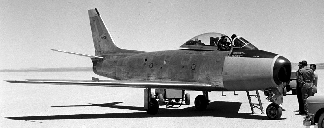 On 3 June 1953 American aviatrix Jacqueline Cochrane, under the supervision of Chuck Yeager, (later BGen Yeager), flew this aircraft to a new 100 km speed record of 1,050 km/h. She also dove this Sabre to 1,270 km/h, becoming the first woman to break the speed of sound.