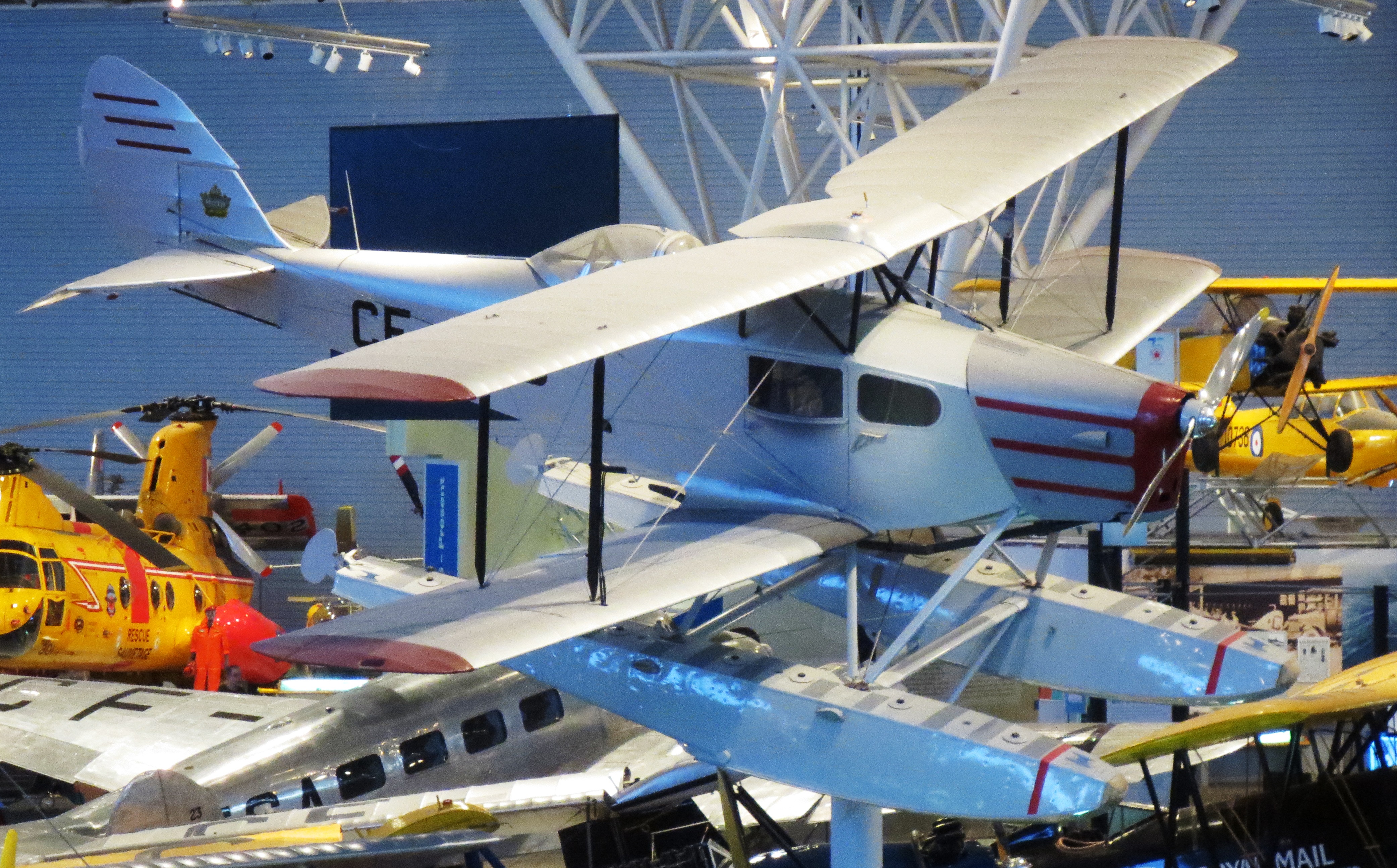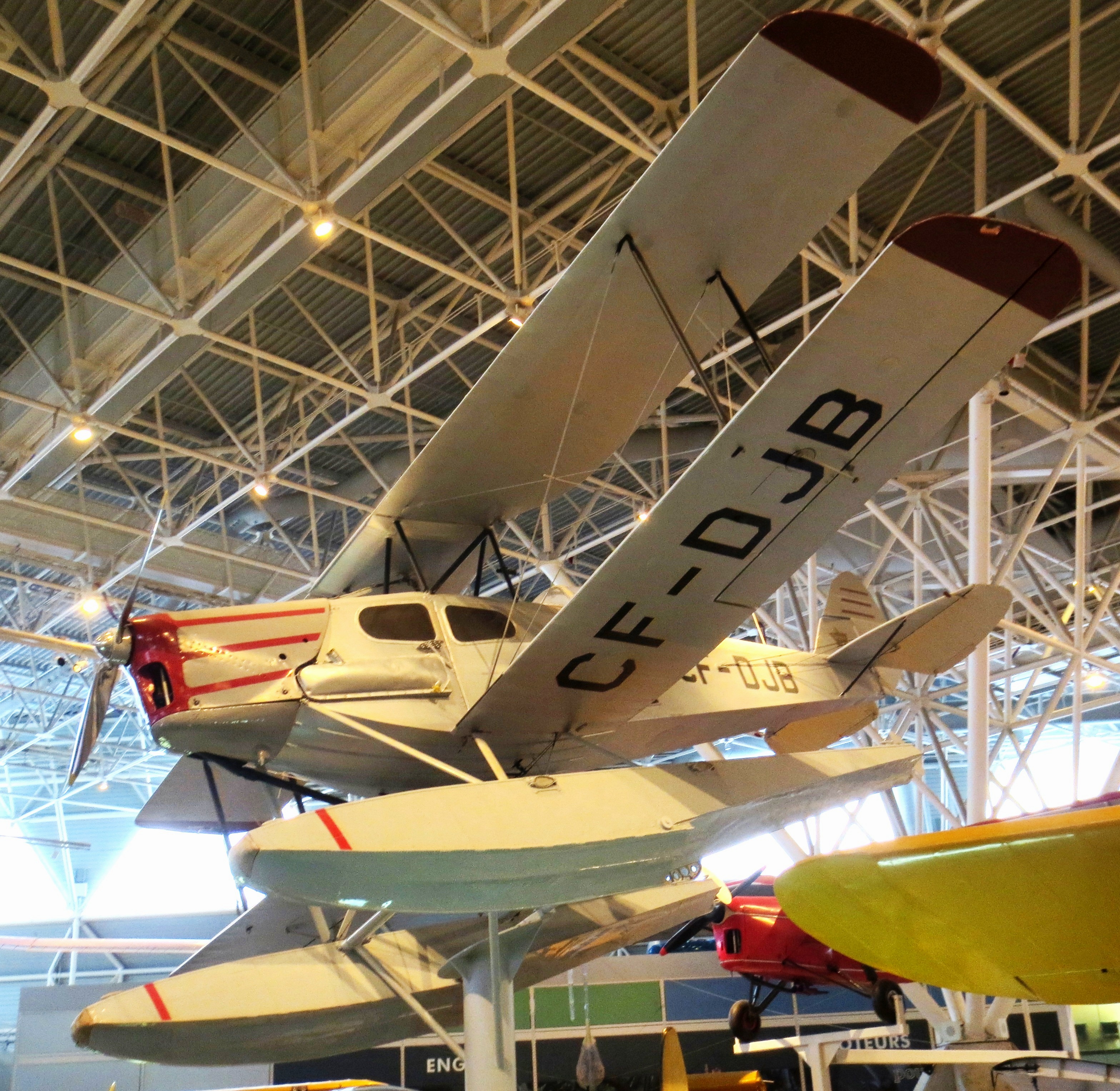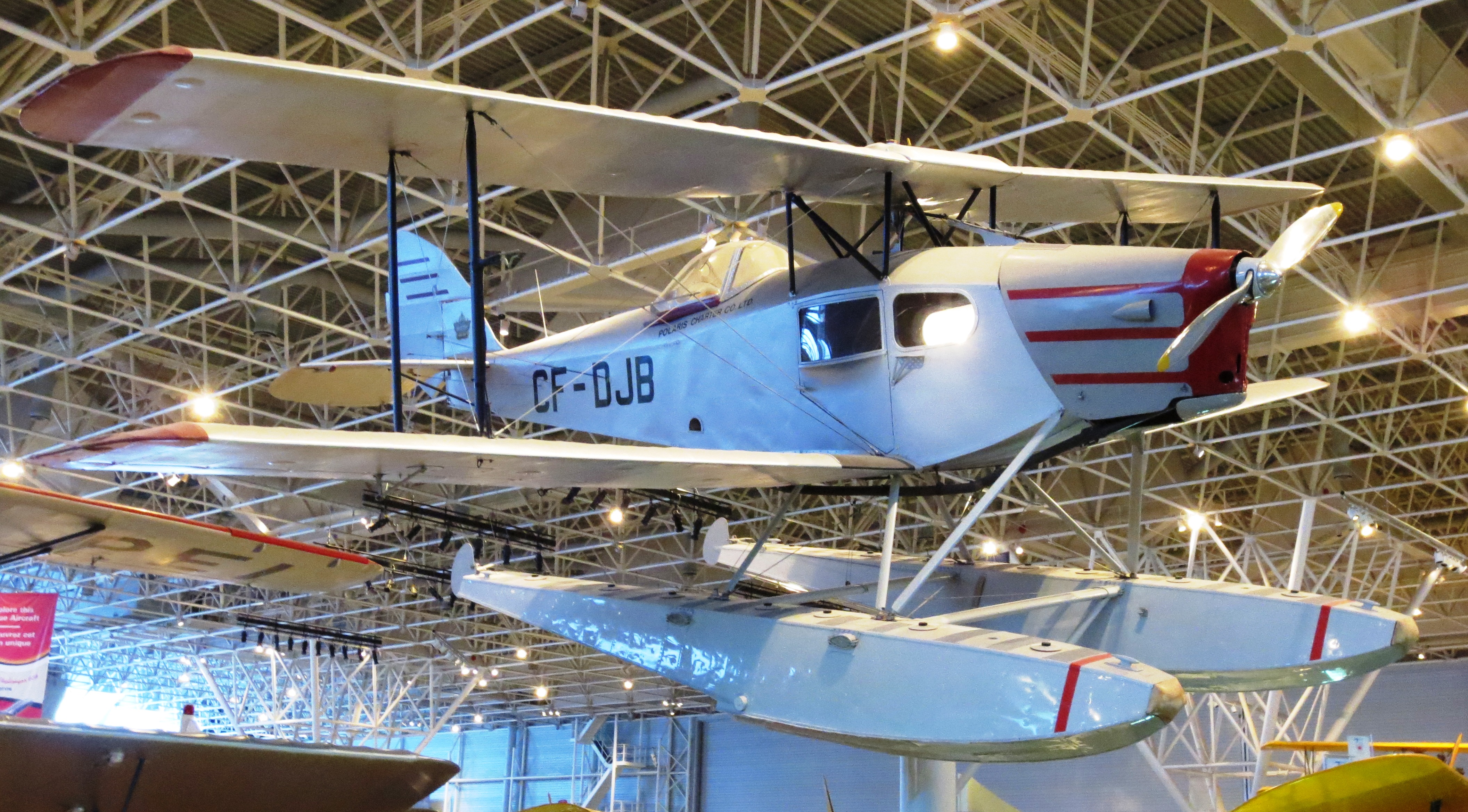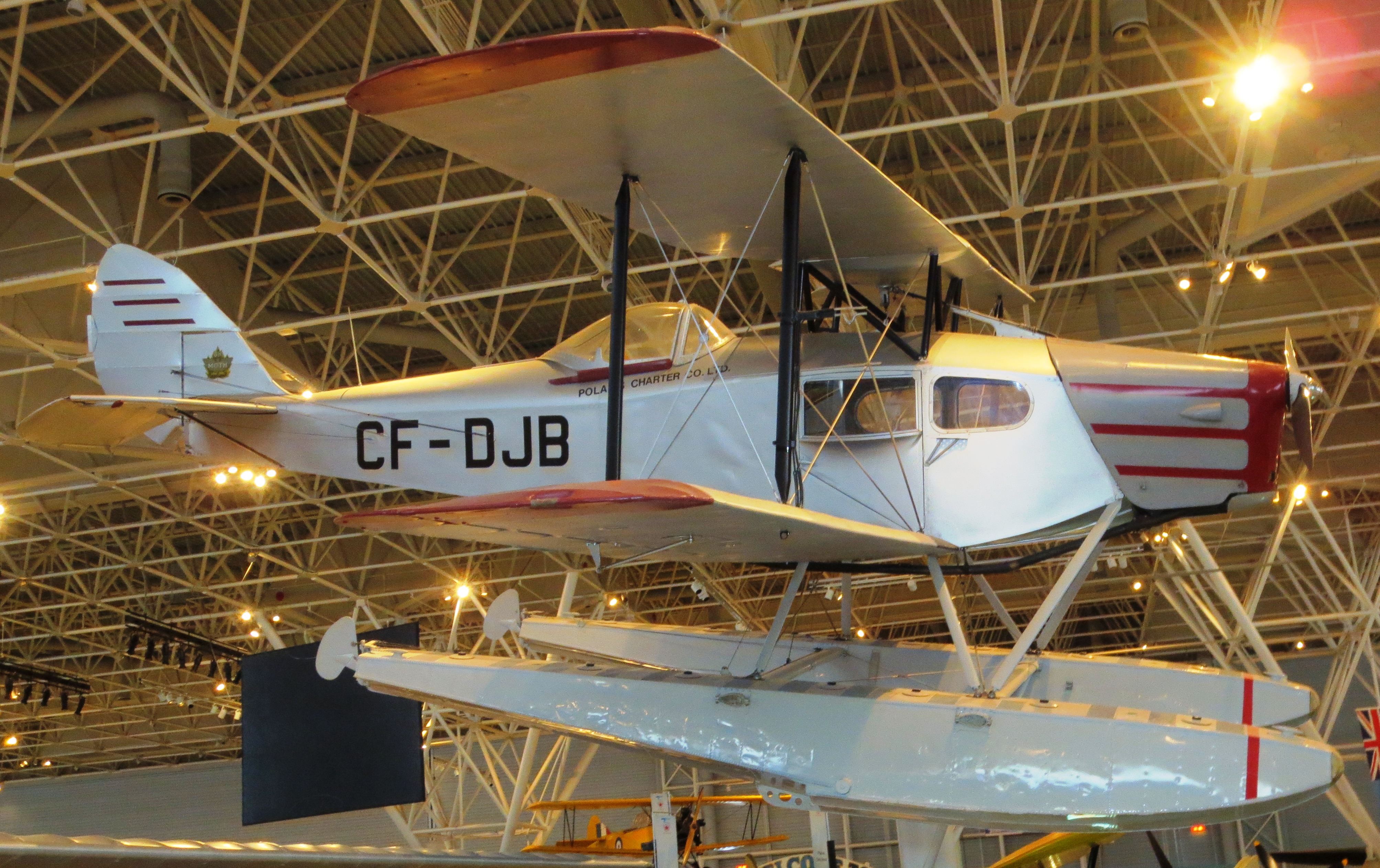 de Havilland DH.83C Fox Moth (Serial No. FM-28/2), CF-DJB.  Built in Canada in 1947, this Fox Moth was owned by a number of operators before Maxwell Ward (founder of Wardair Inc., a private Canadian airline company) purchased it in the 1980s.  Ward had the aircraft repainted to match the markings of his first bush plane (a de Havilland Fox Moth that he had bought in 1946 and used for several years until it was destroyed in a crash in the 1950s).  Ward restored this Fox Moth and presented it to the Museum in 1989.  (CA&SM)