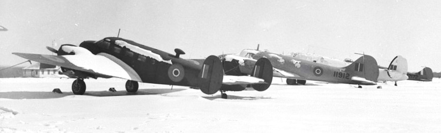 Beechcraft C-45 Expeditor Mk. II, RAF (Serial No. HB117), Avro Anson, RCAF (Serial No. 11912), Lockheed Ventura, RCAF, and Avro Anson RCAF (Serial No. 12172), 29 March 1944.