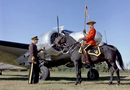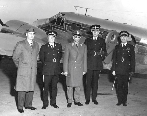 RCMP Beechcraft Expeditor, Reg. No. CF-MPL with an interesting lightning bolt paint scheme. General Malek, Syrian Police and RCMP, 28 Nov 1962.