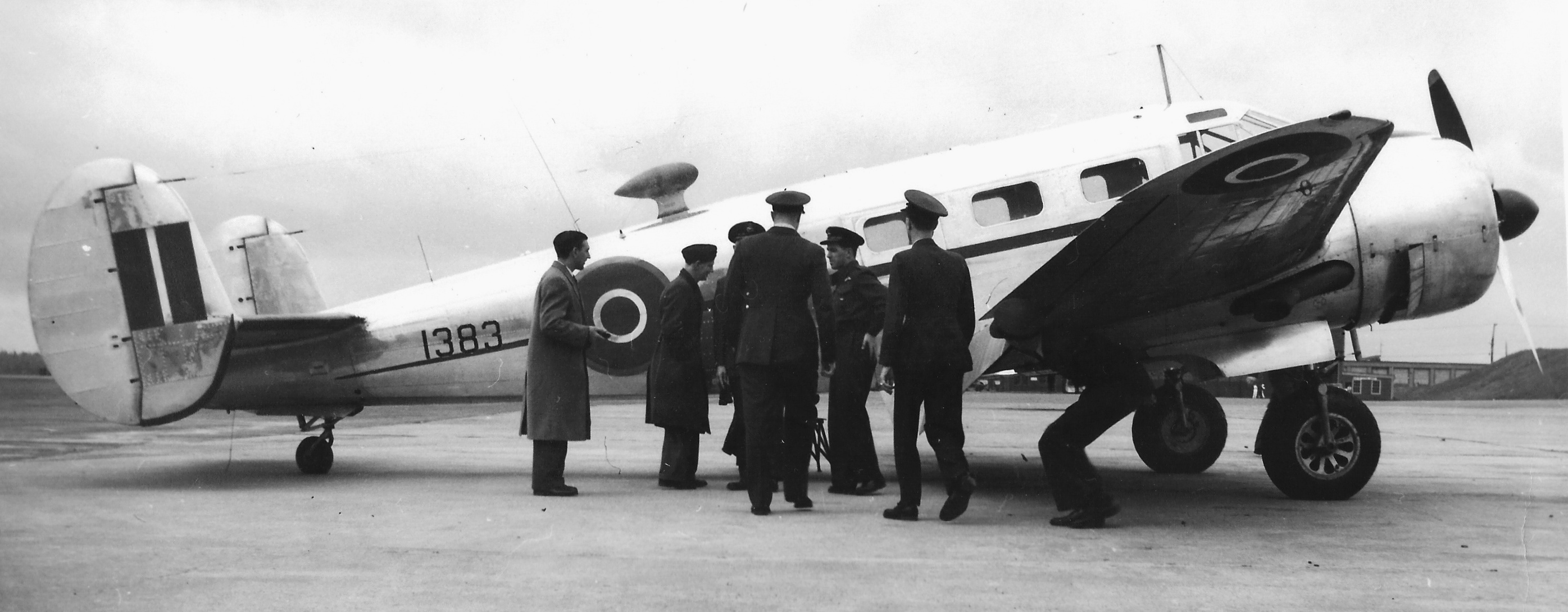 Beechcraft CT-128 Expeditor Mk. 3T, RCAF (Serial No. 1383). Ex USAAF C-45F (Serial No. 43-35683), TOS with the RCAF on 20 Apr 1944, No. 3 Training Command, Montreal, Quebec. To Eastern Air Command on 22 April 1944. Flown by No. 167 (Comm) Squadron, RCAF Station Dartmouth, NS, 1944. Transferred to BCATP on 1 July 1944, probably for use by No. 34 Operational Training Unit at Pennfield Ridge. Category C crash at Pennfield Ridge at 17:10 on 23 April 1945. To workshop reserve at RCAF Station Pennfield Ridge, NB on 24 April 1945, for crash repairs. Diverted to Canada Car & Foundry at Amherst, NS on 5 May 1945 to complete these repairs. To storage with Eastern Air Command on 2 October 1945. To No. 9 (T) Group on 1 June 1946, for use by No. 12 (T) Squadron, RCAF Station Rockcliffe, Ontario. To No. 435 (T) Squadron, RCAF Station Edmonton, Alberta, 20 August 1946. To stored reserve at No. 6 Repair Depot on 5 October 1946. To Central Air Command on 23 September 1947, for use by No. 101 (Comm) Flight. Noted on 6 January 1948 with 896:05 total time, never overhauled, condition good, fitment standard. Noted on 1 April 1949 with 1283:55 total time. To MacDonald Brothers Aircraft 16 June to 5 December 1952, for modifications. To Training Command when completed. To MacDonald Brothers for further modifications 9 March to 7 May 1954. Noted as Mk. 3T by then. To Training Command when completed, for use at RCAF Station Centralia, Ontario. Still at Centralia in 1958. To active reserve at RCAF Station Lincoln Park, Alberta on 31 January 1961, stored at Claresholm, Alberta. To Timmins Aircraft in Montreal for overhaul, 13 January 1961. Noted on 4 February 1961 as “Tentative Selected” for Mutual Aid program. To storage with No. 6 Repair Depot on 5 January 1962. Noted in storage at Dunnville, Ontario on 6 February 1962. To French Air Force, 16 March 1962, alloted their (Serial No. 35683). In France, relegated to gate guard at Chateaud by 1972. Moved 5 November 1986 to RSA Museum at Brienne-le-Chateau, France.