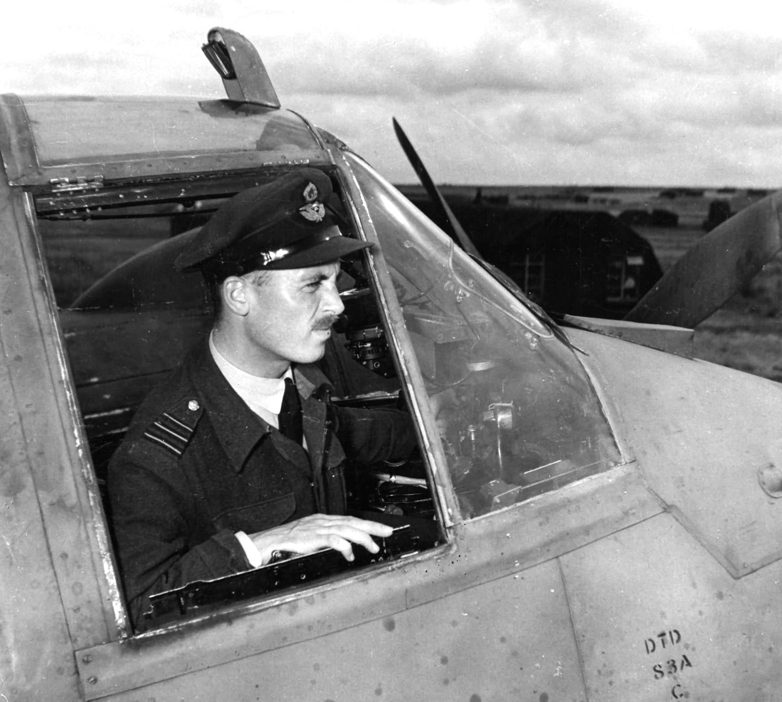 Wing Commander A.K. Gatward commander of No. 404 Squadron RCAF, standing in the cockpit of his Bristol Beaufighter TF Mk. X at Davidstow Moor in the UK.