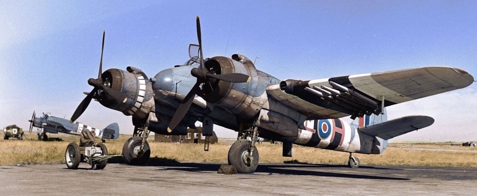 Bristol 156 Beaufighter Mk. IIF (Serial No. R2270), No. 406 “Lynx” (NF) Squadron RCAF, based at RAF Station Aklington, Northumberland, Jan 1942. R2270 was the first production model, fitted with dihedral tailplanes and equipped with AI Mk. IV radar.