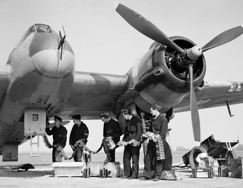 Bristol Beaufighter Mk. VI F (Serial No. V8748), coded ZJ-R of No. 96 Squadron RAF, being re-armed at Honily, UK, 23 March 1943.