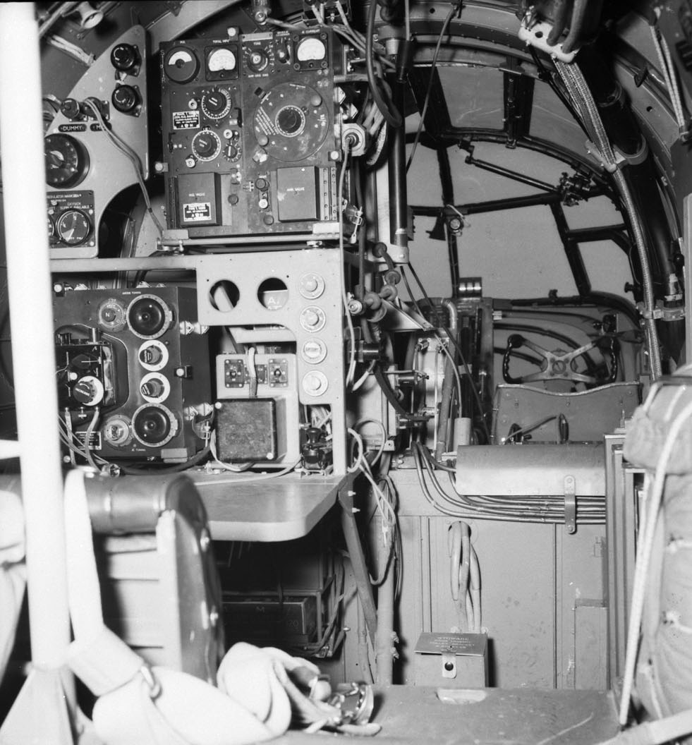 Bristol Beaufort Mk. I (Serial No. N1030), coded N, No. 149 (Torpedo Bomber) Squadron, RCAF, on patrol over Patricia bay, British Columbia, 18 June 1943. N1030 was built by Canadian Associated Aircraft at St. Hubert, Quebec. Taken on strength at No. 1 Wireless School, at Montreal. To Western Air Command on 2 September 1941, for use by No. 32 Operational Training Unit at RCAF Station Patricia Bay, BC. Coded “RD*F” and later “OP*F”. Assigned to No. 149 (TB) Squadron at RCAF Station Patricia Bay, BC on 8 October 1942. Coded “N”. To storage with Western Air Command on 3 November 1943. To No. 1 Training Command on 17 March 1944. Converted to Instructional Airframe A 375 on that date, for use by the Technical Training School at RCAF Station Aylmer, Ontario. To No. 1 Air Command on 15 January 1945, still in use at Aylmer. Pending disposal from 15 February 1945, stored at the Flight Engineers School at Aylmer. Declared of no further use on 28 March 1947, retained in whole state pending disposal.