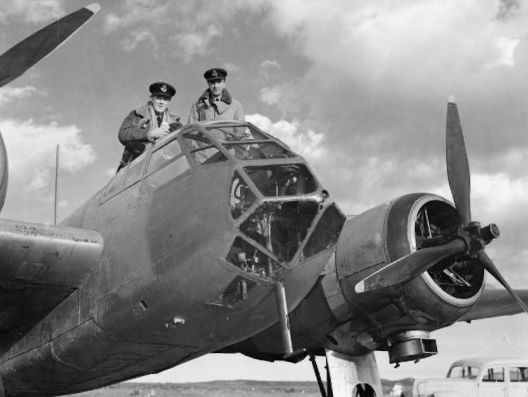 The Commanding Officer of No. 211 Squadron RAF, Squadron Leader J R Gordon-Finlayson, and his wireless operator/air gunner, Pilot Officer A C Geary, photographed in a Bristol Blenheim Mark I at Menidi/Tatoi, Greece, after returning from Corfu. On 24 November 1941, Gordon-Finlayson’s aircraft was hit by anti-aircraft fire during a bombing raid on Valona, Albania. Unable to reach Menidi, he force-landed on a beach at Corfu, where he and his crew were toasted and feted before returning to the mainland by fishing boat and rejoining their unit. Gordon-Finalyson is carrying bottles of wine and other gifts given to them by their Greek hosts.