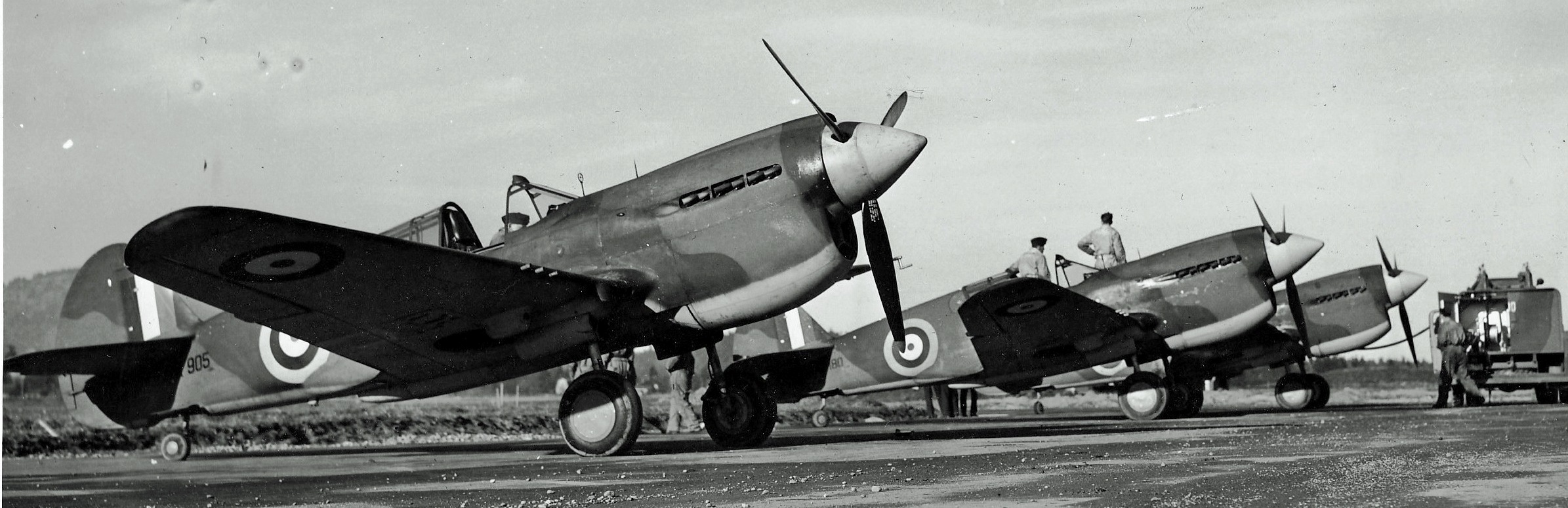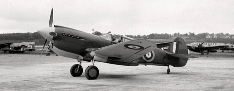 Curtiss Kittyhawk Mk. IAs (Model H87-A4) bearing RAF serials in the ET series from a batch of 480 P-40E-1 aircraft ordered under USAAF Serial Nos. 41-35874/36353, c/n 19395/19474, a number of which were diverted to the RCAF.  The identity of the nearest Kittyhawk, Serial No. ET84-, is likely one of three aircraft: