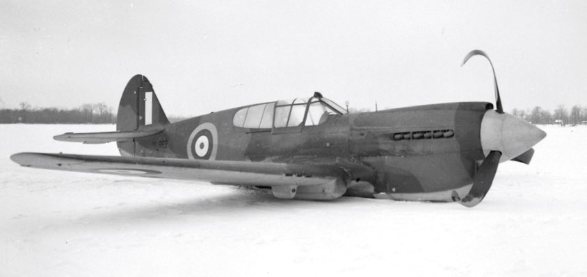 Curtiss P-40 Kittyhawk Mk. I, RCAF (Serial No. 1066), wheels up landing, 4 Feb 1942.
