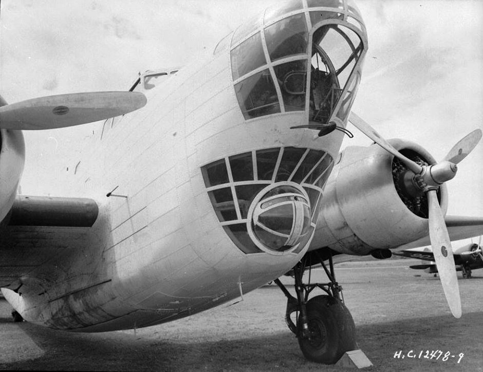 Douglas Digby Mk. I, RCAF, view of the nose gunner position. The forward gunner is in the lower position and what-looks-like the bomb aimer up above.