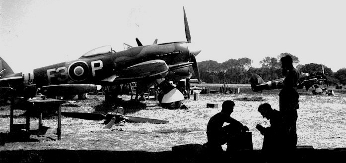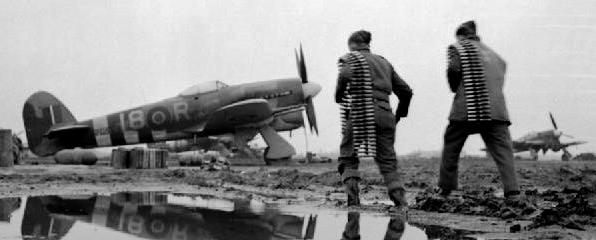 Hawker Typhoon Mk. IBs, No. 438 Squadron, preparing for take-off.