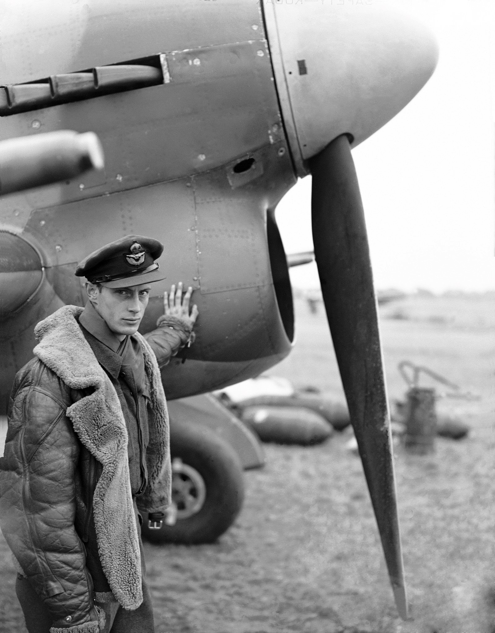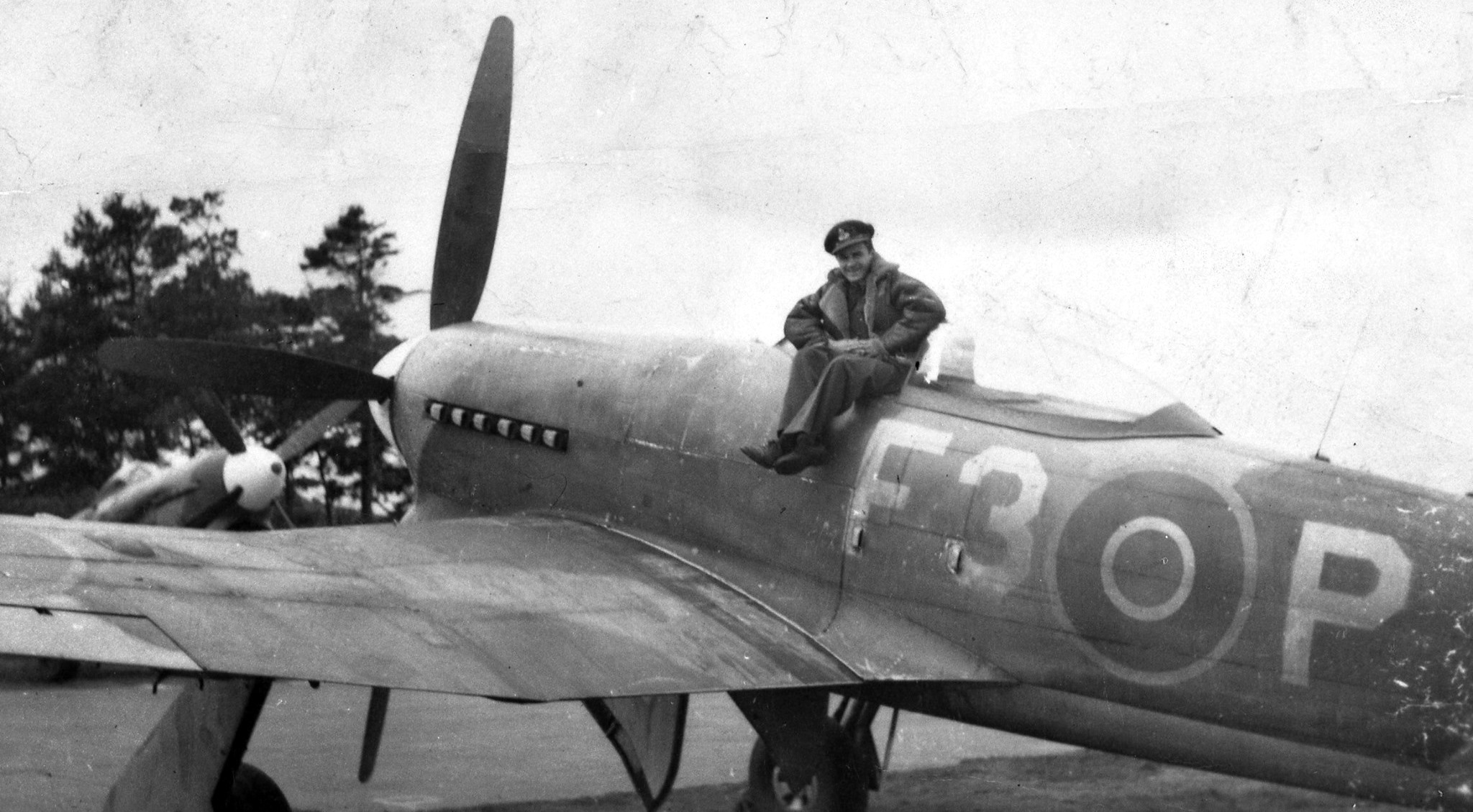 F/O J.C. Uhthoff with his Hawker Typhoon, No. 438 Squadron (“Wildcats”), 1944.