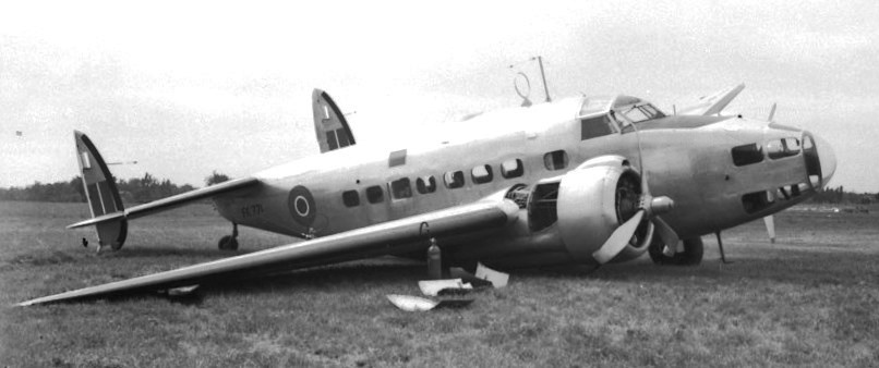 Lockheed Lodestar, RAF (Serial No. FK771) visiting from Dorval, ground loop crash, RCAF Rockcliffe Station, Ontario, 7 February 1944.