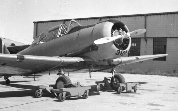North American AT-6A Harvard Mk. IIB (Serial No. 3101),mounted on wheeled dollies, 8 August 1944.