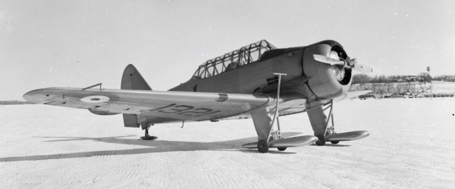 North American NA-61 Harvard Mk. I, RCAF (Serial No. 1321), on skis, 26 Feb 1941.
