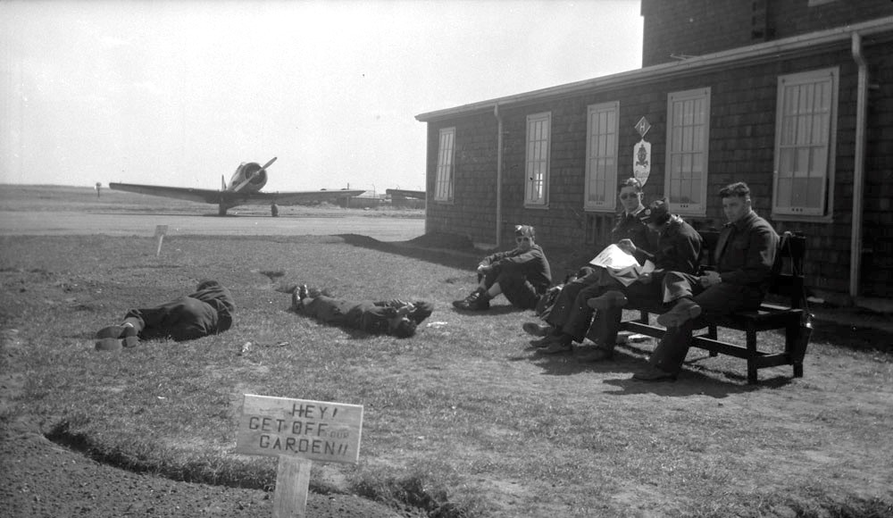 Just hanging out…Students of No. 41 Service Flying Training School, RCAF, Weyburn, Saskatchewan, equipped with both the Harvard and Avro Anson, 1944.