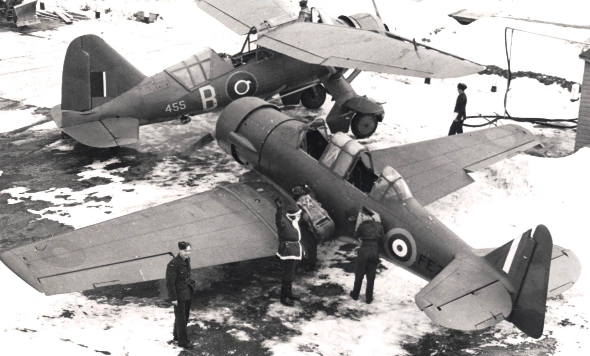 North American AT-16 Harvard Mk. IIB, with Santa Claus, and Westland Lysander, This Harvard brought Santa to No. 1 Coastal Artillery Co-operation (CAC) Flight, Saint John, New Brunswick, Dec 1942.