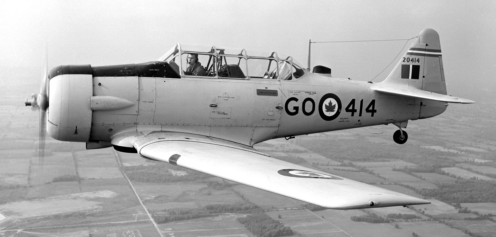 North American Harvard Mk. II, RCAF (Serial No. 3819), 20, No. 41 Service Flying Training School (SFTS) of the British Commonwealth Air Training Plan (BCATP), Weyburn, Saskatchewan, 1944.
