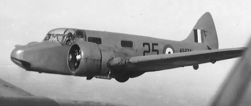Airspeed A.S.10 Oxford Mk. II (Serial No. AS273), 25, in flight over Saskatchewan, 31 Dec 1941.