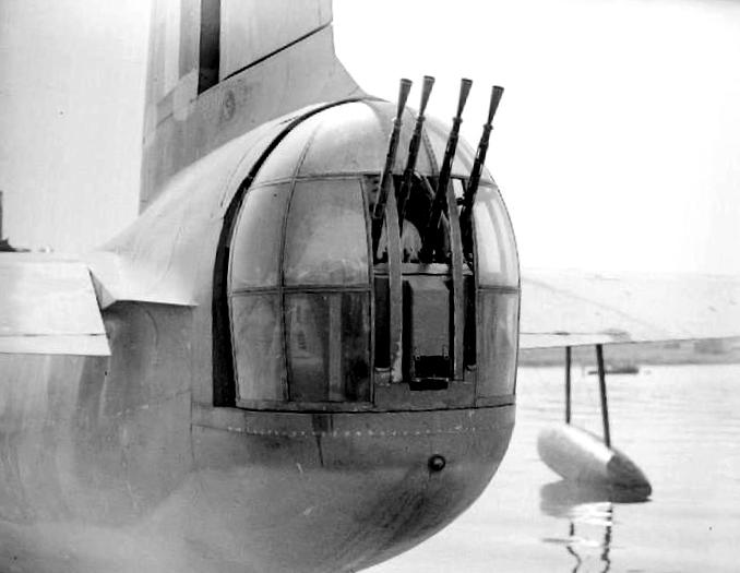 Short Sunderland, Frazer-Nash FN13 rear turret, August 1940. The Sunderland was the first RAF flying boat to be fitted with power-operated gun turrets.