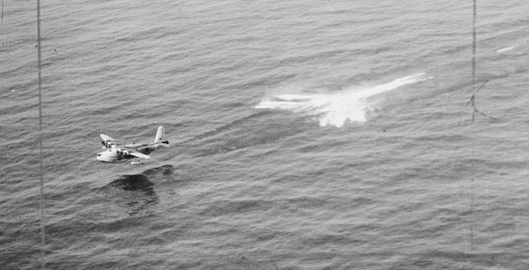 F/L F.G. Fellows and crew in a Short Sunderland (Serial No. DD862), coded G, No. 423 Squadron, RCA, attacked U-672 in the North Atlantic, severely damaging the U-Boat and forcing it to return to base.