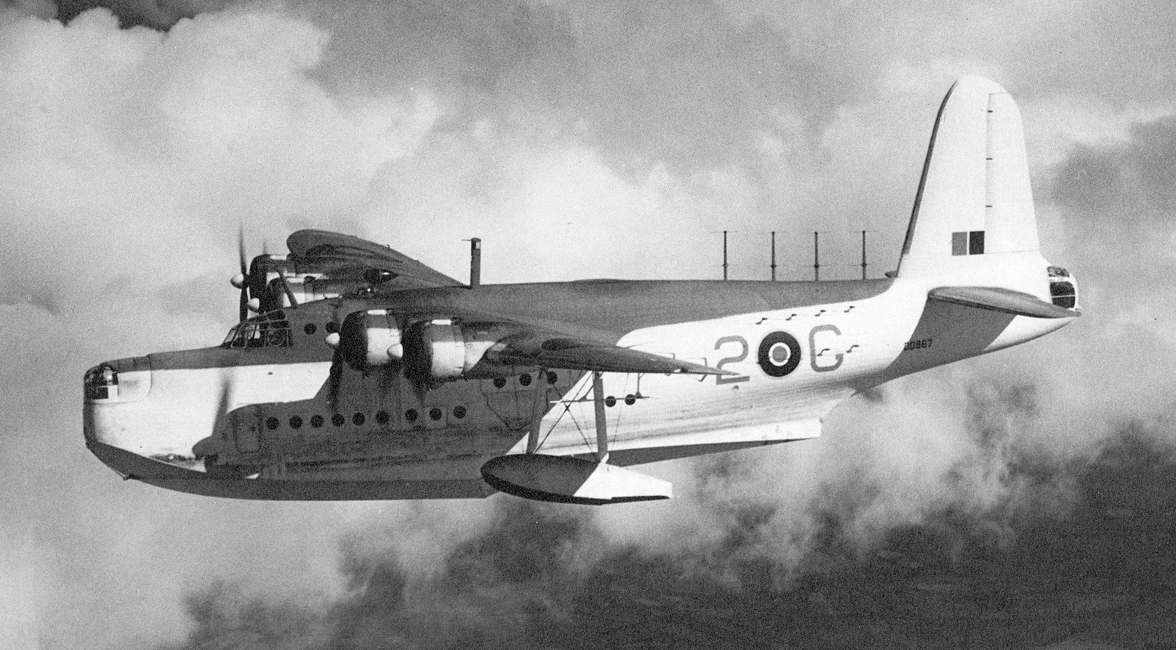 Sunderland Mk. V (Serial No. ML824), coded NS-Z, No. 201 Squadron, RAF. The bulges under the outer wings are the ASV6 radar antennae.