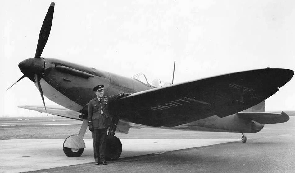 Supermarine Spitfire F Mk. IIA, RCAF (Serial No. L1090), with Air Marshall William Avery Bishop, VC, CB, DSO & Bar, MC, DFC, ED. He was Canada’s top flying ace of the First World War, and a Victoria Cross recipient officially credited with 72 victories, making him the top Canadian and British Empire ace of the war. His son flew Spitfires during the Second World War.