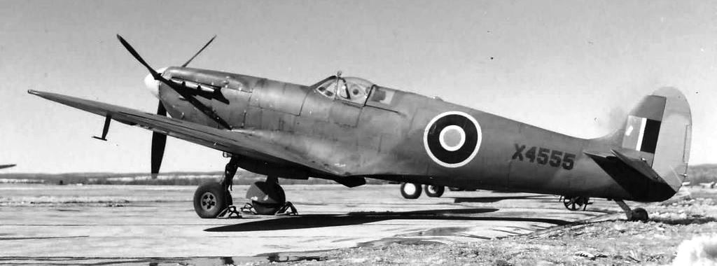 Supermarine 300 Spitfire F Mk. IA (2), (Serial No. L1090), (Serial No. R7193), Spitfire 329 F Mk. IIB (2), (Serial No. P8332), Spitfire Mk. VI (2), (Serial No. X4492), Spitfire PR Mk. VII (Serial No. X4555), Spitfire PR Mk. VII Type G (Serial No. R7143), Spitfire 359 Mk. VIII (1), (Serial No. JG480), Spitfire 379 Mk. XIV (1), (Serial No. TZ138), Spitfire 380 LF Mk. XVIE (1), (Serial No. TE214), Spitfire Mk. XIX (1), (Serial No. PM627), for a total of 11 aircraft on RCAF strength in Canada.