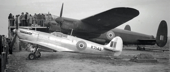 Supermarine Spitfire PR Mk. VII Type G, RCAF (Serial No. R7143). This aircraft was not flown in combat in France in 1944. It was converted to a PR Mk. VII Type G in early 1942 with all of its armament removed and it was in Canada in 1944. The photo was taken by Red Hill at RCAF Station Rockcliffe, Ontario. It was used by the Photographic Flight and went to No. 9 (T) Group, post war. R7143 was flown by the RCAF from 1943 to 1947. This Spitfire and the Consolidated B-24 Liberator behind it were both based at RCAF Station Rockcliffe, Ontario. R7143 was used to shoot down Japanese balloon bombs.